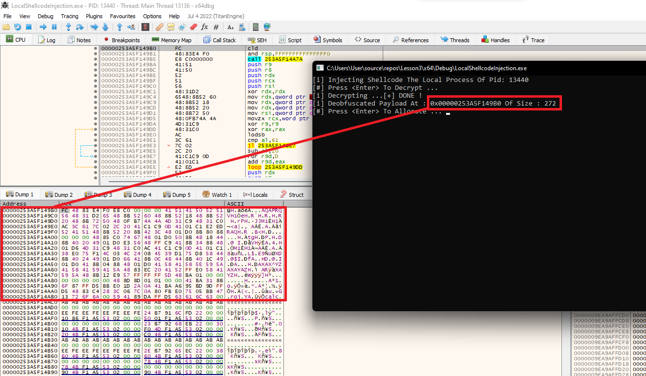 printf("[i] Deobfuscated Payload At : 0x%p Of Size : %d \n", pDeobfuscatedPayload, sDeobfuscatedSize);